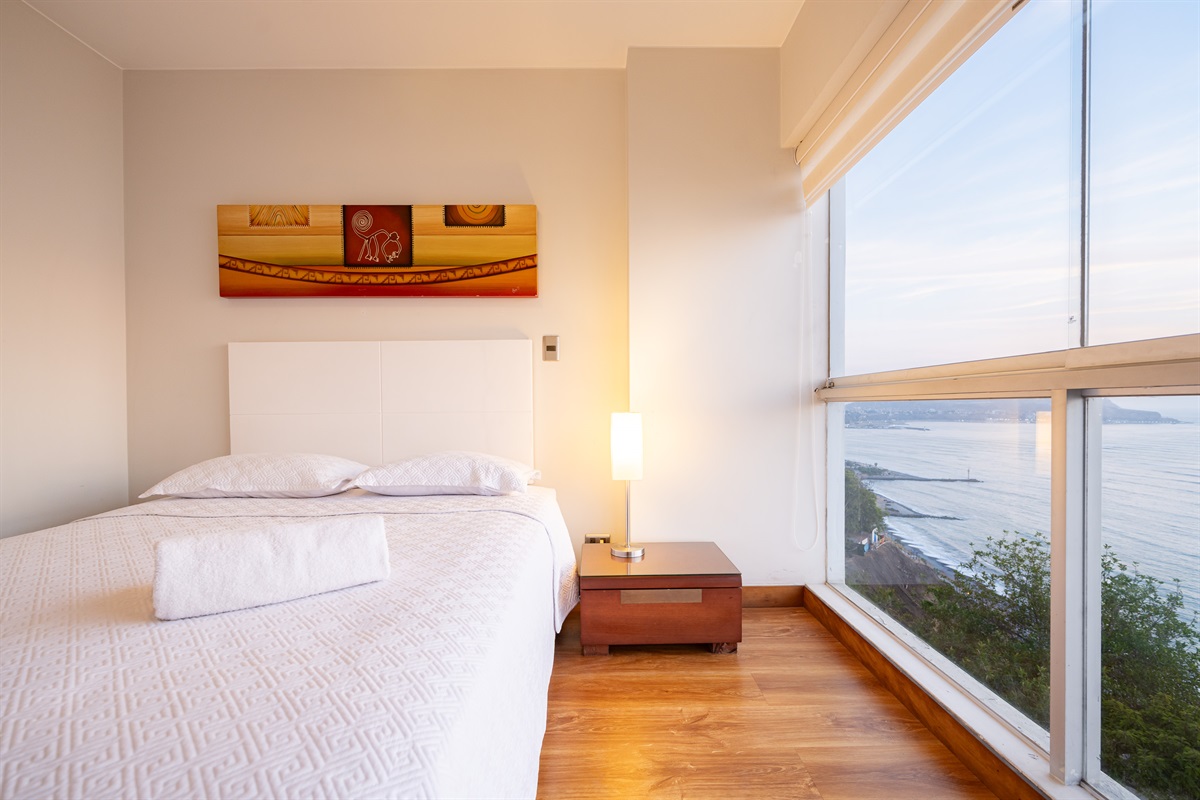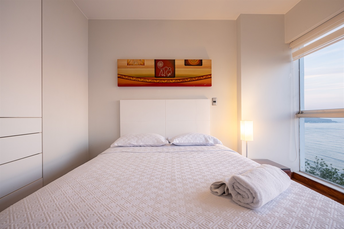 Second bedroom with stunning sea and Malecón views β wake up inspired every morning / Segundo dormitorio con cama doble y una vista impresionante al mar y al malecón β despierta inspirado cada mañana