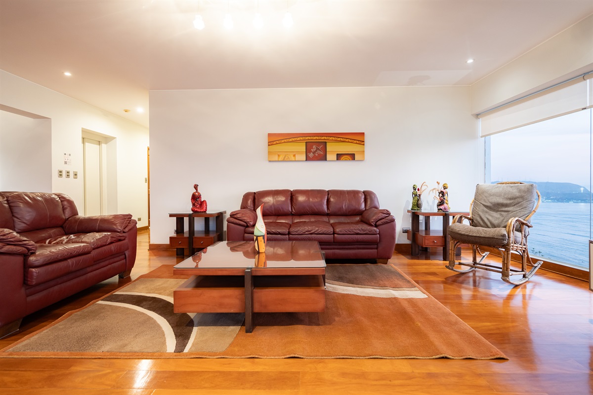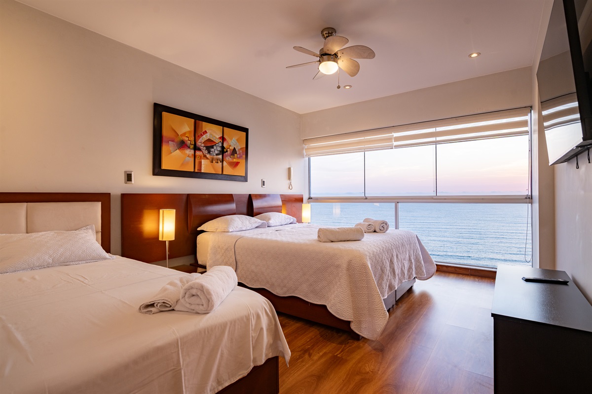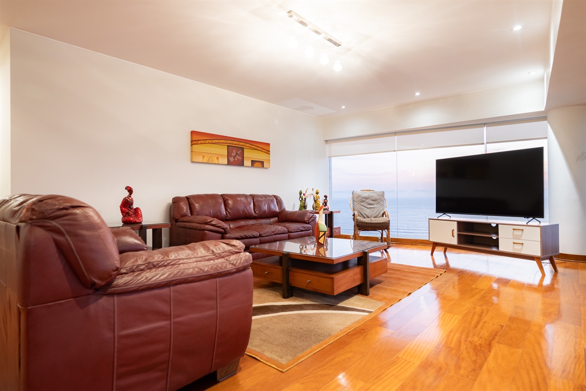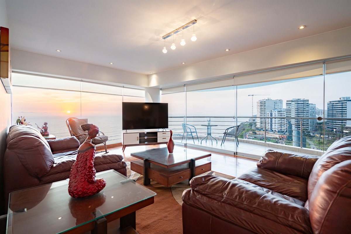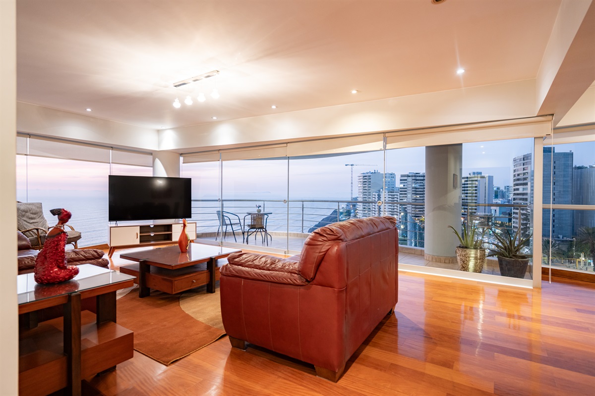View from the living room to the Malecón and the Pacific Ocean β a postcard-perfect moment every day. / Vista desde la sala al Malecón y al Océano Pacífico: un momento de postal perfecto cada día.
