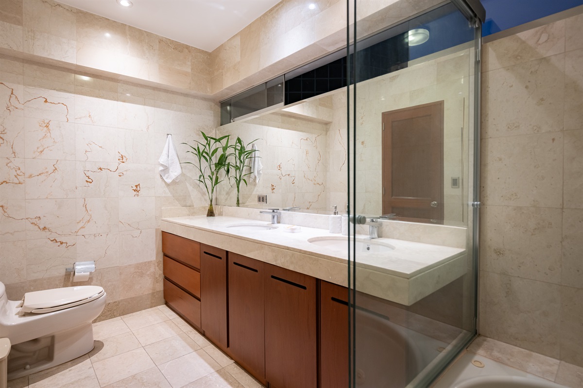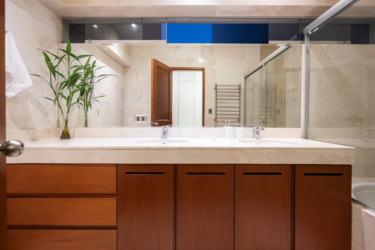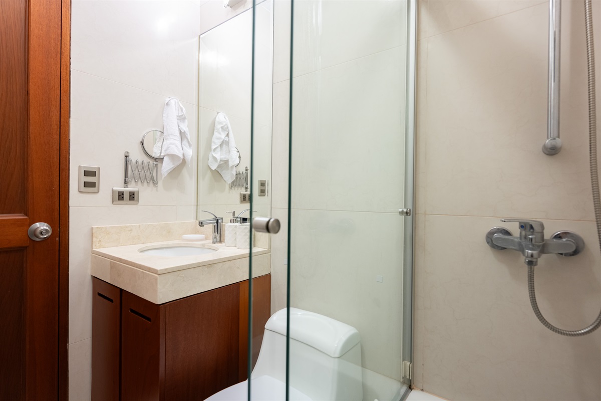 Fully equipped shared bathroom, conveniently located near the bedrooms / Baño compartido totalmente equipado, ubicado convenientemente cerca de los dormitorios